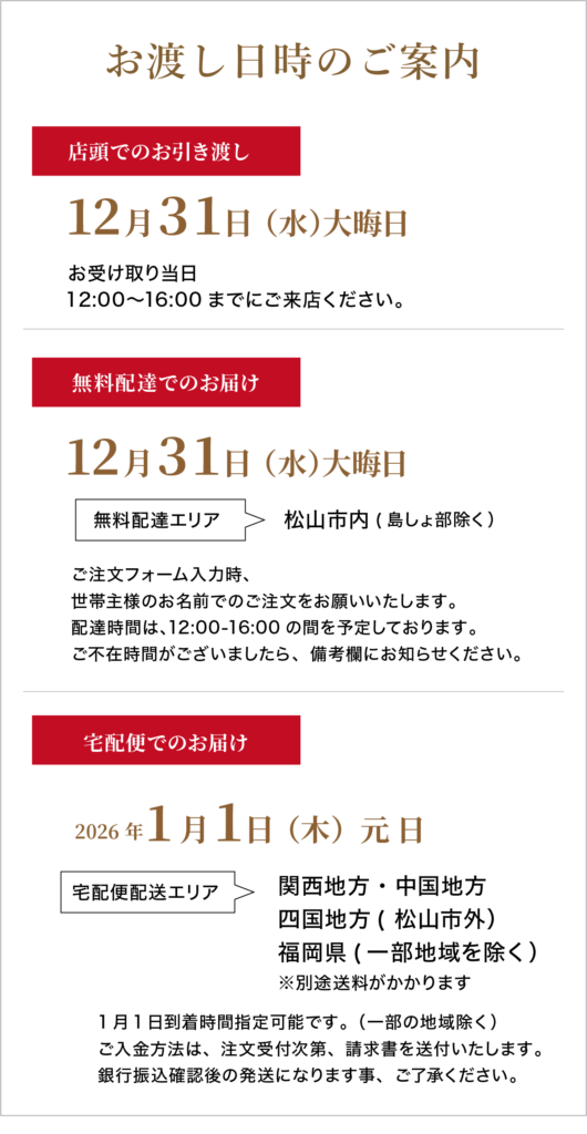 松山市内保冷車にて無料配達承ります。(一部地域除く)